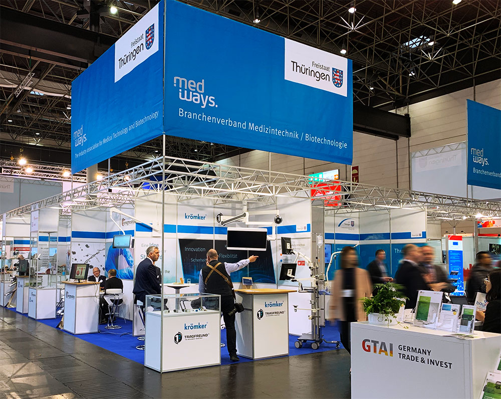 Für die Medizintechnik-Experten INTEGROMED und KRÖMKER entwarfen wir einerseits den Messestand und bauten ihn in Zusammenarbeit unseres Kompetenzteams MEDIA TEAM THÜRINGEN. Die Vorbereitung für die Medica beginnt jährlich schon Mitte des Jahres. Zu diesem Zeitpunkt erstellen wir gemeinsam mit dem Kunden ein Konzept für die Fachmesse. Was wird ausgestellt? Gibt es Innovationen? Wie werden diese präsentiert? Gibt es Highlights auf der Messe, wie beispielsweise Präsentationen oder sogar ein Programm für alle 4 Tage? Wie erreichen wir die Besucher? Was dient der Nachhaltigkeit? Gibt es besondere Give-Aways? Das sind nur einige Fragen, die rund um die Messeausstellung relevant sind. Das Thema Messe ist breit gefächert und dient einer längeren Vorbereitung, damit der Messebesuch auch ein Erfolg wird.